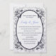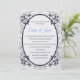 Montré dans un chanteur Pearl toujours populaire, cet invitation a un motif de couronnement Pastel Silver-Grey imprimé à l'arrière - plan sur le devant et sur le dos. Un Sapphire Oval foncé avec des feuilles de travail fantaisie encadre le texte à l'intérieur. Les noms des mariées et des mariées sont mis en surbrillance dans un bleu doux. Corps du texte affiché en bleu profond de Sapphire. Choisissez votre choix de papier et customisez à partir de leur si désiré. images stocks.