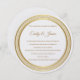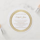 Ce faire-part de mariage est présenté en forme ronde sur un arrière - plan blanc dans un choix papier de papier Peal Shimmer. Sélectionnez le papier de votre choix. Couleur dorée tout autour de l'enveloppe de forme circulaire Nom et texte du couple. Montré en couleur dorée. Customisez cet élément en prenant l'exemple de texte et en y mettant vos informations à la place. Image stock.