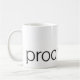 Une tasse blanche avec le "procrasti" dans Neue helvetica.