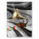 Temps dans rétro - carte vierge. Phonographe avec rose et une horloge sur un rétro arrière - plan noir et blanc de remous. Blanc gauche pour votre propre message.