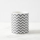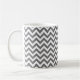 Hip et moderne Chevron Mug tendance. Cette tasse cool est ornée d'un motif zig zag en chevron gris clair et blanc. Ajoutez du texte à cette conception pour lui donner une touche personnelle.
