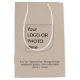 Élevez vos cadeaux d'entreprise avec notre élégant sac de shopping / sac cadeau moyen beige clair, mettant en valeur votre logo ou photo et un texte personnalisable en noir classique.