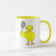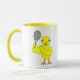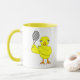 Un poussin jaune tenant une raquette et une balle de tennis est un cadeau amusant pour les moniteurs de tennis et les joueurs.
