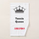 Un essuie-mains personnalisable avec le texte "Tennis Queen" et le nom. En haut une couronne pour la reine.