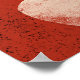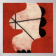 Un abstrait simple en noir, blanc et rouge orange. Une grande forme incurvée passe de haut en bas sur un arrière - plan rouge-orange. Les lignes droites se croisent sur la grande forme tandis que 3 accents noirs ornent le côté droit, puis se répètent au bas.