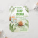 Conçu pour notre collection Camping Anniversaire, cette carte d'invitation personnalisable comprend forêt de jungle, sac à dos, camionnette, feu de camp et polices décoratives. Éléments correspondants disponibles.