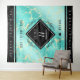 Faites du 11e anniversaire du mariage turquoise une fête inoubliable avec cette tapisserie commémorative ! Un élégant lettrage blanc et noir sur un marbre jaune et un arrière - plan bleu verdâtre bordé de barres noires ajoutent une touche mémorable à cette occasion spéciale et à cette étape importante. Personnalisez avec les noms des couples, les dates du mariage et les messages de félicitations. Design © W.H. Sim. Voir plus sur zazzle.com/expressionsoccasions