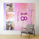 Pour un 18ème anniversaire. Un collage de 3 de vos photos d'elle-même amis, famille, intérêts ou animaux de compagnie. Arrière - plan de dégradé violet, rose et rose de couleur or. Décoré avec des gouttes de parties scintillant imitation. Personnalisez et ajoutez son nom, 18 ans et une date. Date de naissance ou date de la fête d'anniversaire. Texte de couleur violette. Parfait pour une fête surprise ! Utilisez comme bannière de bienvenue, décoration murale ou comme fond de cabine photo.