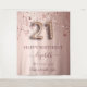 Une tapisserie pour une fête de 21e anniversaire, girly et glamour. Un or rose, arrière - plan à dégradé rose avec élégantes étoiles roses dorées au goutte-à-goutte. Avec le texte : Joyeux anniversaire. Personnalisez et ajoutez le nom de la fille d'anniversaire, et vos noms comme ses amis. Le nom est écrit en or rose foncé avec un script de style moderne écrit à la main avec des swashes. Le numéro 21 est écrit avec une police de style montgolfière tendance. Pour que les swashes ne suppriment que le nom de l'échantillon, laissez les espaces ou émoticônes devant et après le nom. Peut être utilisé comme bannière de bienvenue, décoration murale pour la fête ou comme fond de cabine photo.