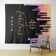 Une tapisserie branchée et glamour de 40 ans. Un arrière - plan noir classique décoré avec des gouttes de parties scintillant irrégulière de couleur arc-en-ciel, la peinture goutte à goutte dans l'or violet, rose et rose. Avec le texte : 40 et fabuleux. Personnalisez et ajoutez un nom. Texte de couleur dorée. Le mot Fabulous est écrit avec un script de style à la main moderne avec des swashes. Peut être utilisé comme bannière de bienvenue, fond de cabine photo et décoration murale de fête.