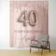 Une tapisserie pour une fête de 40e anniversaire girly et glamour. Un or rose, rose dégradé arrière - plan avec élégantes gouttes de parties scintillant couleur or rose, la peinture goutte à goutte. Avec le texte : Joyeux anniversaire. Personnalisez et ajoutez un nom. Le nom est écrit en or rose foncé avec un script de style moderne écrit à la main avec des swashes. Le numéro 40 est écrit avec une police de style montgolfière tendance. Pour que les swashes ne suppriment que le nom de l'échantillon, laissez les espaces ou émoticônes devant et après le nom. Peut être utilisé comme bannière de bienvenue, décoration murale pour la fête ou comme fond de cabine photo.