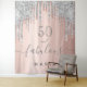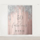 Une tapisserie d'anniversaire 50 ans tendance et glamour. Un fond rose gold girly orné de fausses gouttes de paillettes argent, rose gold et rose. Avec le texte : 50 et fabuleuse. Personnalisez et ajoutez un nom. Texte gris. Le mot Fabuleuse est écrit avec une police manuscrite moderne et des fioritures.