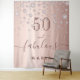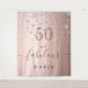 Une tapisserie branchée et glamour de 50 ans. Un arrière - plan de couleur or rose, décoré de faux diamants en or rose. Avec le texte : 50 et fabuleux. Personnalisez et ajoutez un nom. Texte de couleur Brown. Le mot Fabulous est écrit avec un script de style à la main moderne avec des swashes.