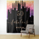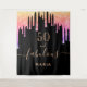 Un tapis de 50e anniversaire tendance et glamour. Un fond noir classique décoré de gouttes de paillettes fausses, aspect de peinture qui coule en violet, rose et or. Avec le texte : 50 et fabuleux. Personnalisez et ajoutez un nom. Texte de couleur dorée. Le mot Fabuleux est écrit avec un style de lettrage manuscrit moderne avec des fioritures. Parfait comme panneau de bienvenue, décoration murale ou toile de fond pour photos.