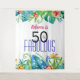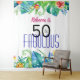 Célébrez son fabuleux 50e anniversaire avec un stand photo de fête à l'aide de cette tapisserie unique et colorée du stand photo tropical ! Créé avec des aquarelles tropicales images florales de bleus, verts, roses et jaunes vibrants. N'oubliez pas de visiter ma collection complète de 50 et Fabulous Tropical Birthday Party Collection à mon magasin Zazzle :