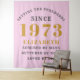 Célébrez l'occasion spéciale d'un 50ème anniversaire avec cette luxueuse bannière murale rose et gris, parfaite pour personnaliser avec le nom et l'année de votre naissance, 1973. Cette grande tapisserie est ornée d'un design unique et magnifique et d'une police élégante pour une fête d'anniversaire mémorable et unique. Montrez cette tenue spéciale à la fête et profitez des souvenirs pour les années à venir.