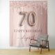 Une tapisserie pour une fête de 70e anniversaire girly et glamour. Un or rose, rose dégradé arrière - plan avec élégantes gouttes de parties scintillant couleur or rose, la peinture goutte à goutte. Avec le texte : Joyeux anniversaire. Personnalisez et ajoutez un nom. Le nom est écrit en or rose foncé avec un script de style moderne écrit à la main avec des swashes. Le numéro 70 est écrit avec une police de style montgolfière tendance. Pour que les swashes ne suppriment que le nom de l'échantillon, laissez les espaces ou émoticônes devant et après le nom. Peut être utilisé comme bannière de bienvenue, décoration murale pour la fête ou comme fond de cabine photo.