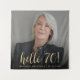 Cette tapisserie de 70e anniversaire personnalisée présente l'invité d'honneur de la photo, nom, et anniversaire, ainsi que la phrase "bonjour 70 !" dans un élégant script de calligraphie couleur or. Un écran sombre permet de faire apparaître le texte. Une excellente façon de célébrer quelqu'un qui fête ses soixante-dix ans !