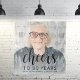 Cette tapisserie de 90ème anniversaire personnalisée présente l'invité d'honneur de la photo, nom, et anniversaire, ainsi que le mot "Cheers" dans élégant script de calligraphie noire. Un écran blanc aide à faire apparaître le texte. Une excellente façon de célébrer quelqu'un qui devient ninty!