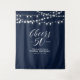 Cette tapisserie moderne est parfaite pour une fête d'anniversaire de mariage de 50 ans sur le thème bleu marine. Vos invités apprécieront de prendre une photo avec ce fond de fête sophistiqué et se souviendront de votre jour spécial. Le design présente une typographie chic " À 50 ans de mariage " et des guirlandes lumineuses. Vous pouvez personnaliser le texte pour votre événement. Les invitations et les fournitures de fête assorties sont disponibles dans ma boutique BaraBomDesign. Merci !
