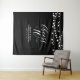 Cette tapisserie moderne est parfaite pour une fête du 10ème anniversaire de mariage en noir et blanc. Vos invités apprécieront de prendre une photo avec ce fond de fête sophistiqué et se souviendront de votre jour spécial. Le design présente une typographie chic "À 10 ans de bonheur" et des guirlandes lumineuses. Vous pouvez personnaliser le texte pour votre événement. Les invitations et les articles de fête assortis sont disponibles dans ma boutique BaraBomDesign. Merci !