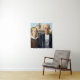 C'est le tableau classique de Grant Wood, American Gothic, montrant un fermier et sa femme debout devant leur ferme, lui avec sa fourche, son regard sur lui.