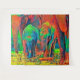 Portrait graphique coloré de deux bébés éléphants asiatiques avec leurs mamans