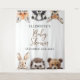 Ce décor de fond photo pour baby shower avec des animaux de la forêt aquarelle mignons peut être personnalisé avec vos informations en typographie moderne. Conçu par Thisisnotme©