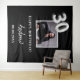 Une tapisserie pour une fête d'anniversaire de 30 ans. Fond noir, texte blanc. Personnalisez et ajoutez une photo de haute qualité, du texte, un nom et une date. Le numéro 30 est écrit avec une police de style ballon argenté faux. Peut être utilisé comme décoration murale pour la fête ou comme toile de fond pour un photomaton.
