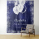 Une tapisserie pour une fête d'anniversaire de 21ème anniversaire (ou de tout âge) fillette et glamour. Arrière - plan bleu marine, la couleur bleue est inégale. Décoré de parties scintillant en faux argent, de mousseux et de ballons blancs. Personnalisez et ajoutez un nom, un âge, une date.