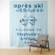 Panneau de bienvenue pour un mariage sur le thème de la montagne en aquarelle - Décoration de photomaton de fête - Décoration personnalisée de mariage hivernal - Mariage sur le thème d'Après Ski - La tapisserie de bienvenue parfaite pour un mariage sur le thème du ski ou un brunch de mariage hivernal dans un monde d'après-ski. Avec une illustration aquarelle de lunettes de neige. Avec un mélange de police sportive rétro et de script amusant sur un fond bleu clair. Parfait pour une mariée qui aime le ski et les sports d'hiver. Personnalisez ce panneau de bienvenue de mariage hivernal modifiable avec tous les détails de votre événement.