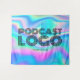 Tenture Aqua Blue Iridescente Rainbow Modern Podcast Logo