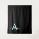 Noir et Aqua Bleu Turquoise Simple Script Monogramme Nom et Tapisserie initiale. Cela rend le cadeau parfait pour 16 ans, mariage, douche nuptiale, anniversaire, baby shower ou bachelorette pour quelqu'un qui aime le luxe glam et les styles chic.