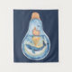 Aquarelle Océan scène dans Ampoule légère Tapisserie de bateau de baleine, mur suspendu. Une scène fantaisiste peinte à l'intérieur d'une ampoule d'un bateau sur l'océan avec un coeur en dessous de ça et une baleine en dessous. L'arrière - plan de la tapisserie est le bleu le plus foncé dans la conception de l'ampoule et complique bien le design. Si vous le souhaitez, vous pouvez modifier cette couleur arrière - plan.