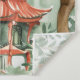 Cette tapisserie est composée d'une pagode de style asiatique traditionnelle, rendue par de délicates touches d'aquarelle, au milieu d'un paysage verdoyant. Le design s'inspire de l'élégance architecturale que l'on retrouve au Japon, en Chine, en Corée et au Vietnam, et qui rend la sérénité de la nature mêlée au patrimoine culturel. Le mélange harmonieux de teintes verdoyantes et de détails complexes évoque un sentiment de tranquillité et d'intemporalité, ce qui en fait une pièce polyvalente pour diverses applications artistiques.