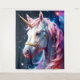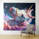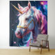 Jolie licorne imaginaire avec crinière rose et magie arc-en-ciel contre un ciel nocturne. Cette tapisserie est parfaite pour décorer la chambre de votre enfant, ou pour vous accrocher !