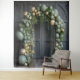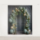 Joli arc de ballon vert pâle et or avec rideaux foncés suspendus tapisserie, cadre élégant de photos d'anniversaire d'argent ou d'or, photos Mariages ou tout événement ou occasion