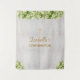 La guirlande fleurie vintage sur la bordure supérieure et les fleurs dans les coins inférieurs - lys blancs et fleurs blanches plus petites - sont d'une carte de voeux vintage de Bertha Maguire (1862-1910), maintenant dans le domaine public. L'arrière - plan est en marbre blanc. Il y a une croix d'or au-dessus du texte. Le nom de l'enfant est écrit dans un élégant script calligraphique, le reste en casquette. Tout le texte peut être personnalisé et a une couleur jaune doré, semblable à la croix d'or.