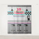 Unique et amusant ! Retro Diner Countertop fond avec couleurs rose et bleu et motif Checkerboard. Customisez avec le nom, l'âge ou l'initiale de la bannière de menu. ©2021 Miss Sassy Party Designs