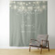 Cette sauge à cordes vertes lumières script élégant mariage photo fond de stand peut être personnalisée avec vos informations dans la typographie chic. Conçu par Thisisnotme©