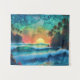 Laissez la beauté surréaliste de cette peinture de paysage marin vous transporter dans un monde de tranquillité, où un coucher de soleil fascinant se heurte avec des tons irisés, opaux et jade.