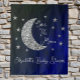 Au-dessus du baby shower de la lune avec la lune d'argent et les étoiles contre un arrière - plan de nuit noir et bleu