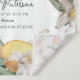 Faites patienter vos invités pour la baby shower à venir avec notre superbe design tropical aquarelle Citron Jaune. Ce magnifique design célèbre la joie de l'arrivée d'un nouveau-né avec son beau design aquarelle de citron, parfait pour toute célébration de baby shower. Avec ce design unique, vous pouvez être sûr qu'il fera une impression inoubliable sur vos invités et créera une atmosphère spéciale pour le grand jour. Célébrez la beauté de la vie avec cette invitation exquise !