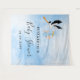Pour une baby shower élégante célébrant un bébé garçon. Un ciel bleu et blanc en arrière-plan. Avec une cigogne volante mignonne tenant un bébé garçon. Personnalisez et ajoutez le nom de la future maman. Le texte Baby Shower est écrit avec un style de lettrage manuscrit moderne et tendance. Lettres noires. Simple, minimaliste et élégant ! Peut être utilisé comme bannière de bienvenue, décoration murale de fête ou comme toile de fond pour photobooth.