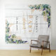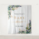 Un fond en bois blanc rustique. Décoré de feuilles d'eucalyptus vertes aquarellées, de brindilles, de verdure et de feuilles dorées. Personnalisez et ajoutez le nom de la future maman et une date. Lettres noires et dorées. Peut être utilisé comme bannière de bienvenue pour un baby shower, comme décoration murale de fête ou comme toile de fond pour photobooth.
