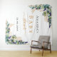 Tenture Baby Shower eucalyptus verdure monogramme doré