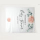 Bannière élégante, classique et moderne de style floral pour baby shower, tapisserie célébrant une petite fille. Décoré de pivoines aquarellées rose et or rose, de fleurs et de verdure d'eucalyptus. Avec le texte : Baby Shower écrit en grande écriture manuscrite moderne de couleur noire. Personnalisez et ajoutez le nom de la future maman et une date.
