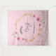 Une tapisserie célébrant une petite fille. Un cadre géométrique en faux or et des fleurs tropicales roses, Hibiscus. Personnalisez et ajoutez un nom. Le texte : Baby est écrit avec un style d'écriture manuscrit moderne. Parfait comme décoration murale de fête, panneau de bienvenue ou comme toile de fond pour photos, arrière-plan de photobooth.