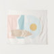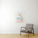 Cette jolie tapisserie moderne de surf et de plage suspendue présente une planche de surf à veinage de bois sur la plage avec des coquillages éparpillés.