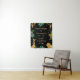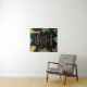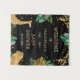 Cette tapisserie de bienvenue pour baby shower sur le thème de la jungle safari présente des animaux en faux foil doré (girafe, lion et singes), du feuillage de jungle doré et vert, et une pincée de confettis dorés sur fond noir. Ajoutez le nom de la future maman en texte doré et la date de la fête en blanc.